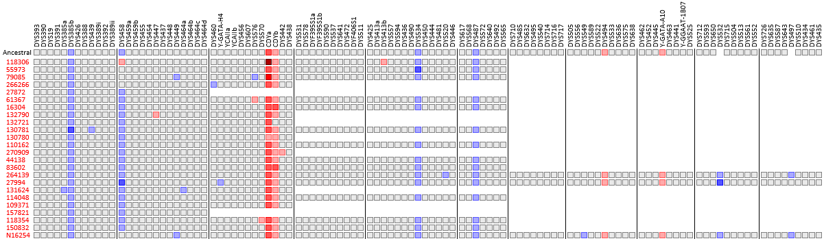 Included in the above table are the Boggs men whose FTDNA kit number is public. Because of their close similarity I have also included Clements (150832) and Canady (N16254). There are other Boggs men tested as SMGF and an older match that was on the Boggs site as BX-1 that is not listed above.