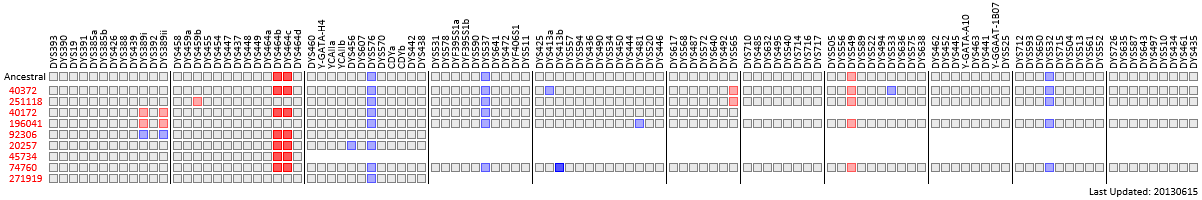 Below are the haplotypes for the 9 Williamson members of the Little Scottish Cluster tested so far. Unlike Sloan or Kilgore, Williamson is much younger. Based solely on these haplotypes, its origin would likely be in the early 18th century. The Williamson Y-DNA results can be found in the Williamson FTDNA project in the E Sub group.